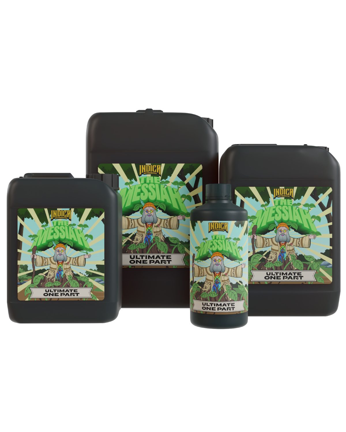 Indica Nutrients THE MESSIAH is the ultimate solution for plant nutrition and pH optimization. With all essential nutrients in one product, it is the only 'single step' feed available. Its unique formula includes chelated micronutrients and technology that instantly dechlorinates tap water. Suitable for coco media, it contains high calcium and low chlorine for optimal plant growth.