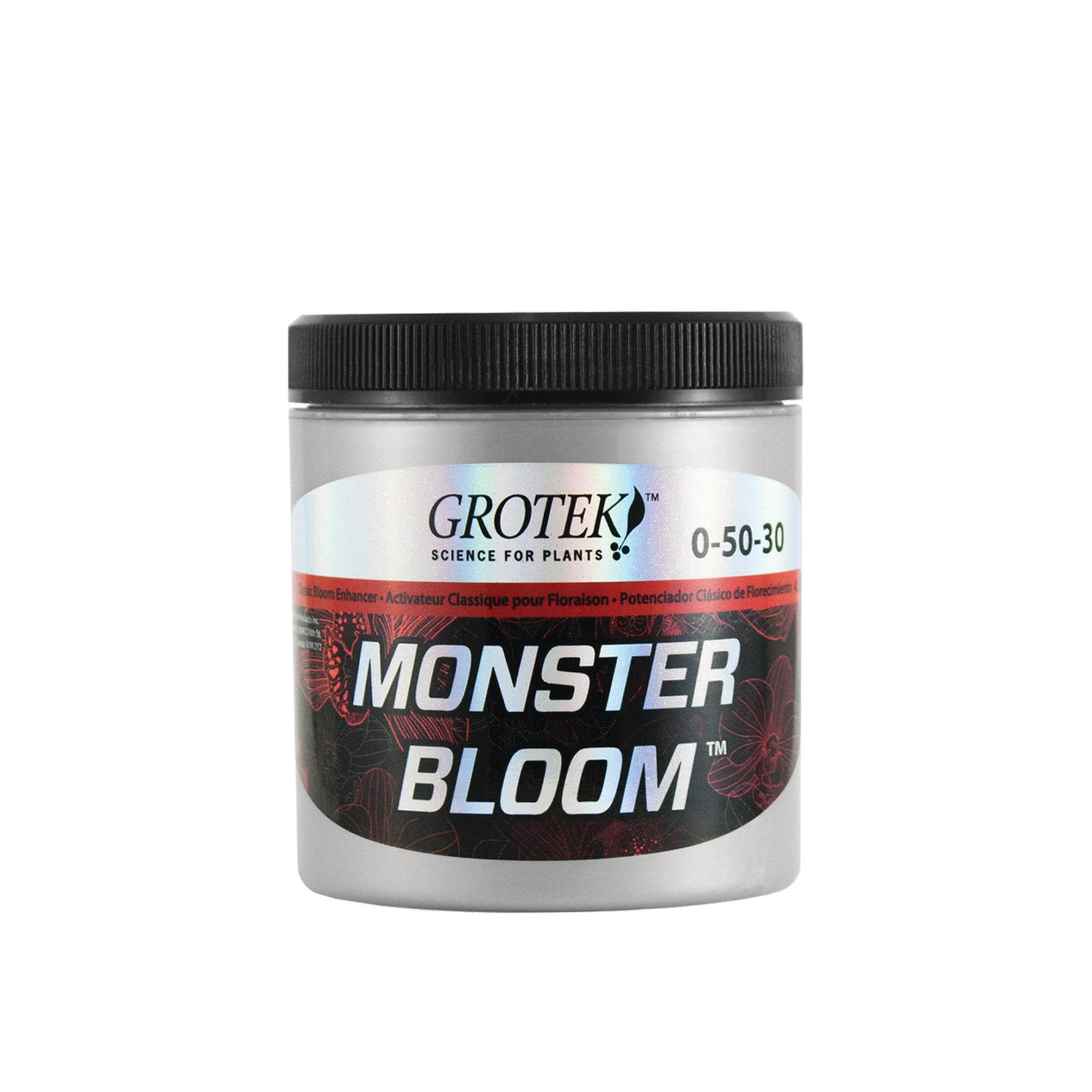 Monster Bloom™ plant flower booster A classic bloom enhancer, Monster Bloom™ has gained a reputation for its ability to assist plants during the middle stages of flower development. The high concentration of phosphorous encourages blooming and plays a vital role in plant metabolism. The potassium in the formula improves bloom and fruit quality while impacting photosynthesis, assisting starch production within the plant. Monster Bloom is very concentrated and should be phased out prior to the last two weeks of flowering. This will ensure the plant has the opportunity to metabolize all the power locked within Monster Bloom. The result will be a flavourful and abundant crop. Monster Bloom is a supplement and should be used as part of a complete fertilizer program.