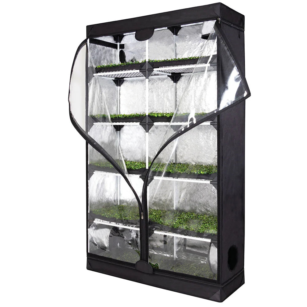 Garden HIGHPRO Propagator professional propagation systems Garden HIGHPRO offer a range of propagator tents to help create the perfect environment for seed germination and rooting cuttings. Constructed from strong and tear resistant 420D Nylon Fabric with the frames constructed from a patented strong and stable steel structure. The inner is covered with a premium 97% reflectivity mylar certified as plant friendly. The high quality zippers are light proof and corrosion resistant. Plastic viewing windows, doubled soft fabric air, electrical inlet and outlet sockets, complete this tent range.