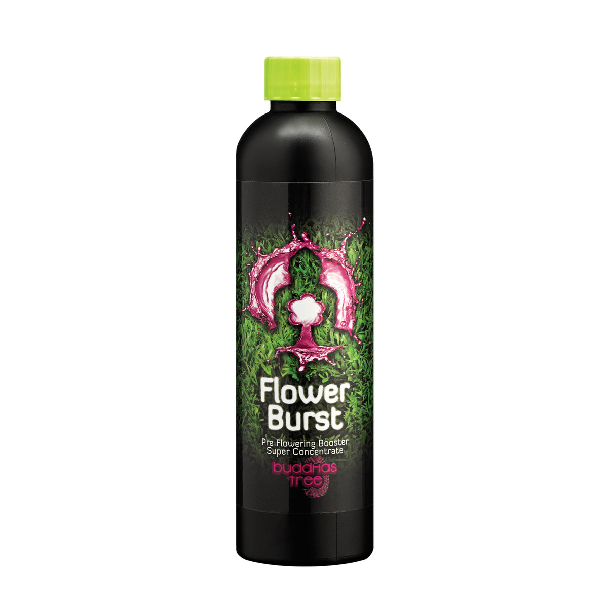 Flower Burst fast flower developer Flower Burst is a unique product from Buddhas Tree that has been specifically created for use during your plants pre-flowering and early flowering stage. It promotes explosive flower set without hindering continuing vegetative growth, creates an increased number of flower sites and ensures a seamless change into the pure flowering phase of the bloom cycle. This results in a quicker and more efficient flowering response, which is achieved in the kindest and safest way with a carefully composed blend using the same highest quality raw food safe materials used across our range. In trials Buddhas Tree Flower Burst induced a much quicker and more robust flowering response than control specimens. Flowers were recorded 4-5 days earlier than control plants with an increased amount of larger flower clusters.